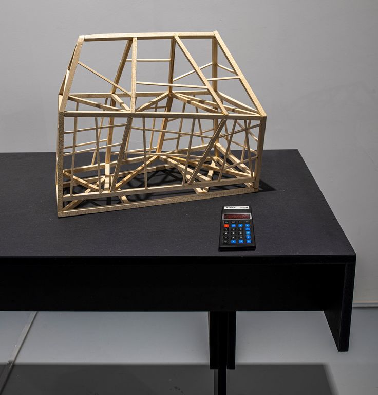 Adopting a kind of artistic chain reaction, Simon’s artworks can often lead to other artworks. Chinese Calculator became fundamental in the process of making the work The Holiday House, made half a year later. Simon made a small model of a house, in particular one based on the memory of the summer house he would visit with his family as a child on their holidays. Created from Balsa wood favoured by hobbyist model-makers, the artist made all the measurements to 25 construct the model using the Chinese Calculator. With the calculator’s degrees of variation, all the angles of the house’s structural supports and contours are slightly off, giving the model a slightly odd, precarious look with an un-level floor, and no segment being truly horizontal or vertical. Chinese Calculator and The Holiday House are exhibited together, which becomes particularly meaningful for the latter. Chinese Calculator actually provides much of the formal context for The Holiday House, bringing one inspiration from adulthood in dialogue with one from childhood.