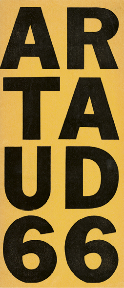 leaflet|foletto ARTAUD 66, Teatro de la Peste, Centro de Experimentación Audiovisual del Instituto T. Di Tella, 1966. design | diseño Juan Andralis
