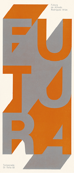 leaflet|folleto FUTURA, Alfredo Rodríguez Arias, Centro de Experimentación Audiovisual del Instituto T. Di Tella, 1968. design | diseño Rubén Fontana