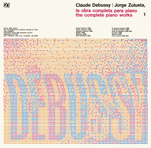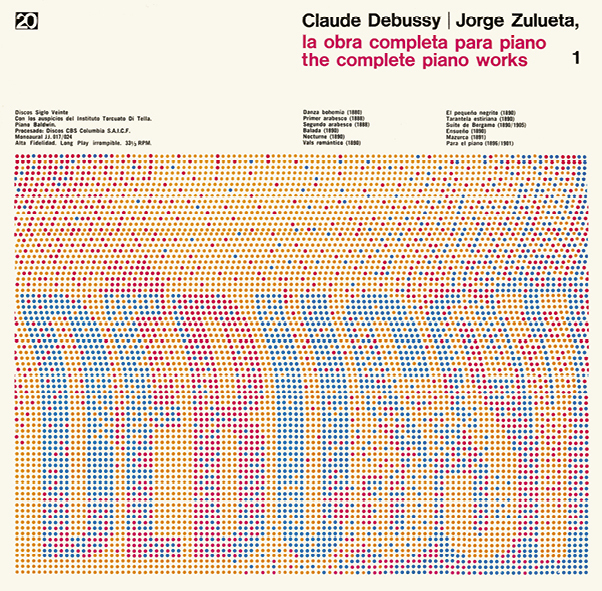 12" | Jorge Zulueta playing Claude Debussy: la obra completa para piano vol. 1, Instituto T. Di Tella, 1968. Design by Juan Carlos Distéfano & Rubén Fontana