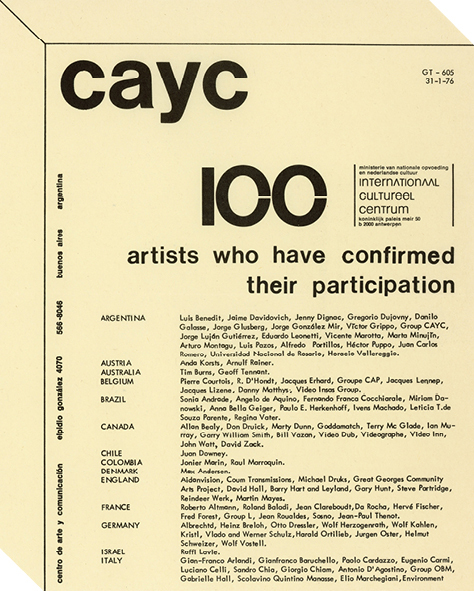 Press note | 5th international encounter on video, ICC Antwerp (GT-605 and 606), 1976. Concept by Jorge Glusberg
