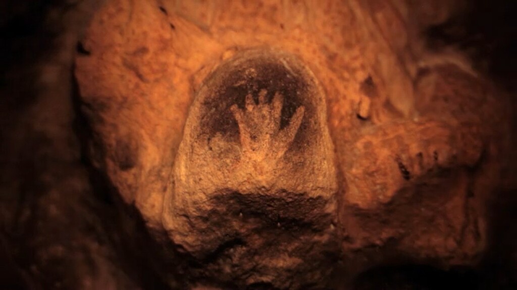 Pour Grotta Profunda, les humeurs du gouffre (2011), Pauline Curnier Jardin prend pour point de départ la vie de Bernadette Soubirous. En 1858, cette jeune fille aurait vu dix-huit apparitions de la Vierge Marie dans une grotte près de Lourdes. Dans ce film psychédélique, un homme habillé en femme interprète le rôle principal. Au cours de ses visions, Bernadette se transforme en un œil ambulant. Dans la grotte, le personnage rencontre des créatures fantasques, telles que la Vénus de Willendorf et un couple disco nommé Vanille et Chocolat. Bien plus qu’un simple décor, la grotte dans laquelle se déroulent les scènes fait penser à un corps, ou à un utérus. C’est aussi un espace où l’extase, le rituel et la performance se confondent : un théâtre naturel. On pense aux grottes de Lascaux ou de Chauvet, où les êtres humains préhistoriques ont réalisé des peintures murales et peut-être même des jeux d’ombres là où l’acoustique et la lumière particulières le permettaient.