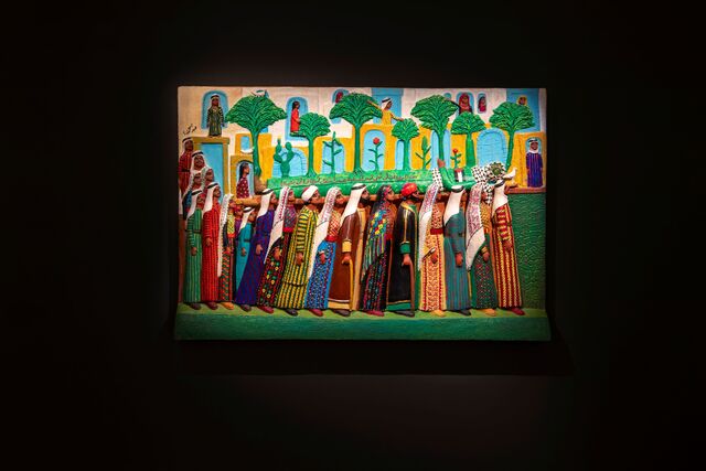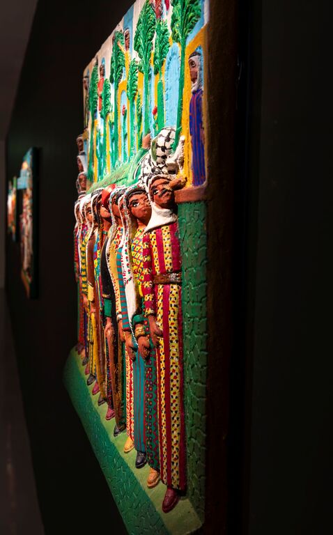 Utilisant une technique novatrice à base de sciure de bois et de colle pour créer des reliefs peints, Zarara a développé un langage visuel unique articulé autour de thèmes tels que la résistance et l’identité. Son œuvre mêle mémoire individuelle et histoire nationale, met souvent en scène des combattants de la liberté, des slogans révolutionnaires et des paysages symboliques. Sa pratique s’étend au-delà de la Palestine, et brosse le portrait de mouvements de libération mondiaux : en Irlande, en Amérique latine et en Afrique du Sud.