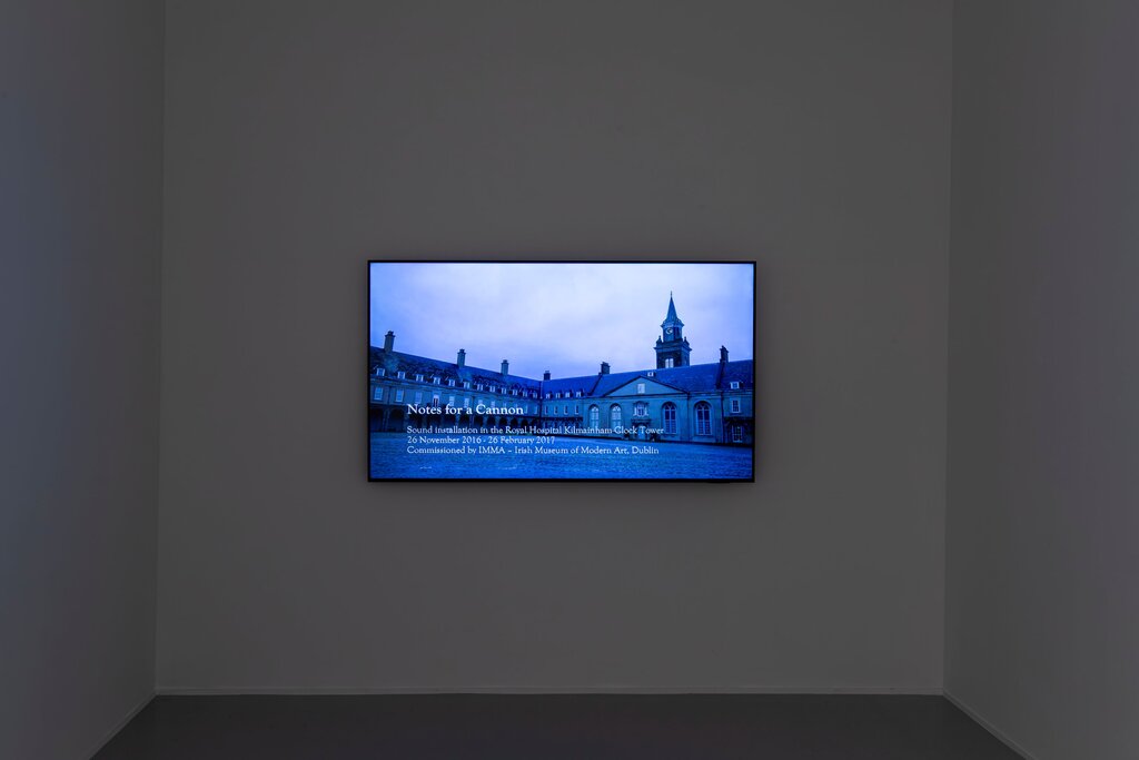 Notes for a Cannon [Notes pour un canon] explore des histoires entremêlées de la domination coloniale britannique en Palestine et en Irlande. L’installation comprend des images que Jacir a filmées à Acre et à Gaza, des dessins, des photographies, une cloche d’une église d’Armag qui date de 1890 et une montre à gousset ottomane de la même année. L’œuvre prend comme point de départ la tour de l’horloge qui se trouvait autrefois à la porte de Jaffa à Jérusalem et la perte par Dublin de son propre fuseau horaire, le Dublin Mean Time. Les Britanniques ont détruit la tour en 1922 afin de remodeler la ville de Jérusalem conformément à une vision biblique façonnée par l’imaginaire colonial. Sa destruction a également effacé la coexistence de deux perceptions du temps, et les a remplacées par une mesure unique et standardisée, liée à Greenwich. Notes for a Cannon aborde la manière dont plusieurs temporalités sont vécues simultanément. Plutôt qu’un récit linéaire, Jacir construit un champ tactile, stratifié et associatif où les objets du quotidien deviennent des marqueurs de la violence temporelle et politique.